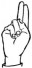 На ћирилици написано ЕВГЕНИЈЕ СКЛОПИЋ састоји се из 15 слова [?]. Исписано ћириличном једноручном азбуком за глувонеме: